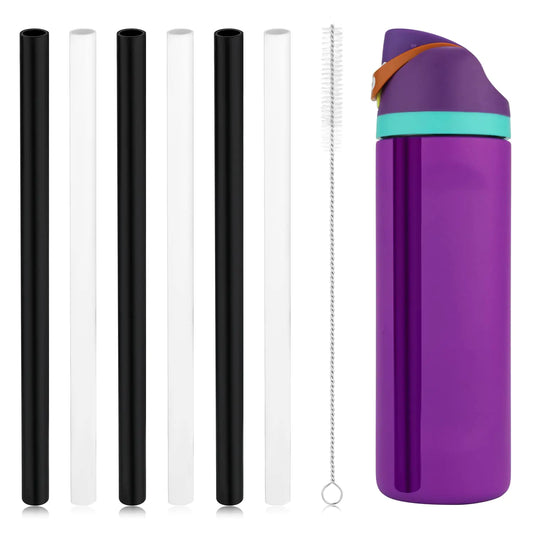 Replacement Straws for Owala FreeSip 24oz 6pcs Reusable Plastic Straws with Cleaning Brush for Owala Flip Insulated Stainless Steel Water Bottle 24 oz Tumbler Accessories Parts (Black and White)